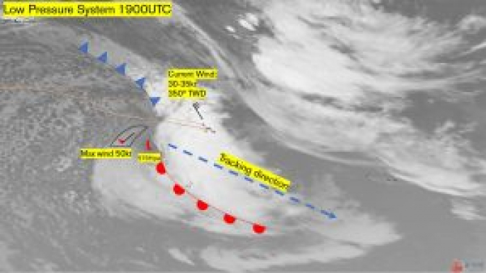 Essa é uma pequena visão do sistema de baixa pressão com a frente fria nos mares do sul. Os barcos devem sofrer muito nas próximas horas pela terceira etapa da Volvo Ocean Race. Isso era previsto. O vento deve bater em até 50 nós nesta noite em SW. Numa manobra diferente do resto das equ...