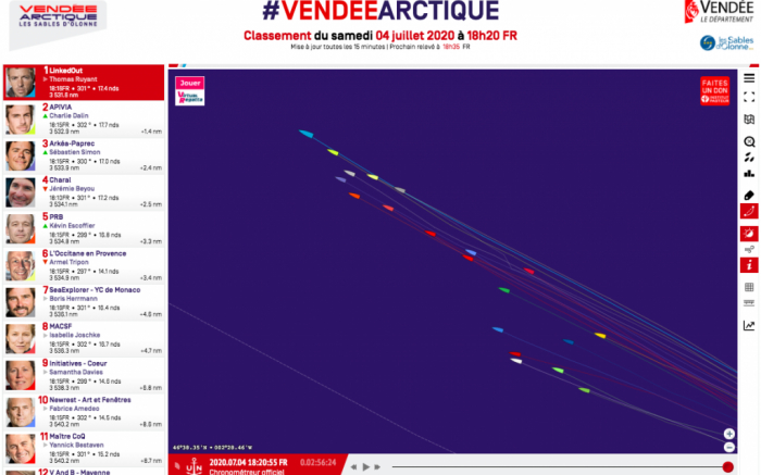 A largada ocorreu no período da tarde em Les Sables d'Olonne com 15 a 17 nós soprando. Os velejadores farão um percurso triangular pelos mares da Europa, passando por Islândia e os Açores. A V...