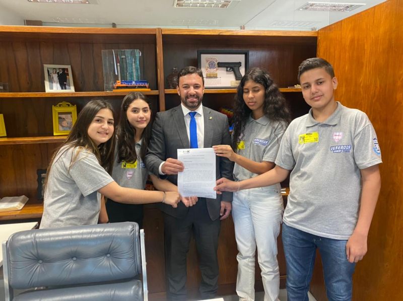 Por intermédio do vereador e duble de pastor, Kaká Fernandes (Podemos), vereadores mirins visitaram o gabinete do deputado federal Daniel Freitas (PSL), pra entregar um pedido de uma emenda.