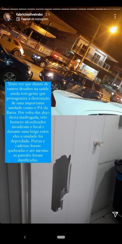 O posto de Pronto Atendimento de Saúde da Barra, na Dubai Maravilha, foi invadido durante a madrugada na última quinta-feira, por três indivíduos (safados!) que promoveram desordem e um quebra, quebra geral.