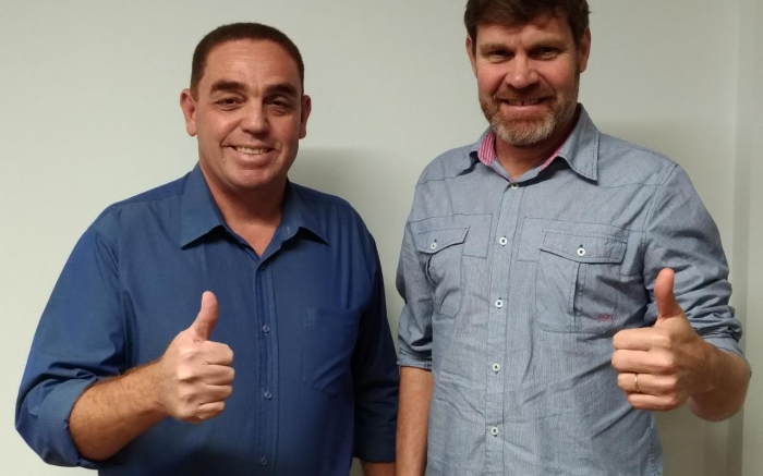 O Cidadania e o PT do outro lado da vala, se uniram. O pré-candidato a prefeito de Navega-City, Cirino Adolfo Cabral, o Cirininho Malvadeza (Cidadania) se uniu ao Luiz Duarte, o Luizinho (PT) de vice na busca da principal cadeira do paço da beiradinha do Itajaí-Açu. Foto (Divulgação)