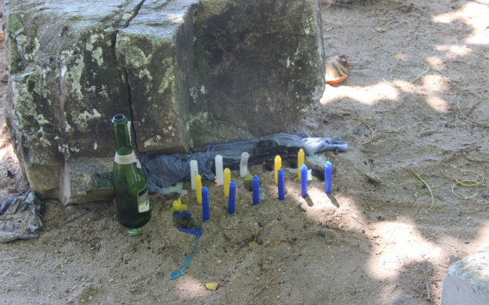 Fotógrafo desavisado andava pela orla da Penha, na tarde desta quinta-feira, dia 12, e se deparou com a imagem de um despacho nas pedras próximas da praia. Coisa do 45... O entisicado fotógrafo não perdeu a chance de registrar o saravá, que segundo apontaram os olheiros da Praia do Quilombo, é ...