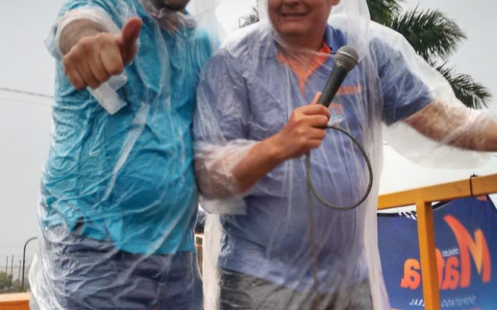O líder dos Progressistas Fernando Pegorini (PP), agarrou com unhas e dentes a campanha do Mancha Branca e tem passado à semana em cima de um caminhão dando à cara a tapa pedindo votos para votos para Osvaldo Mafra (SD) a federal. Foto (Divulgação)
