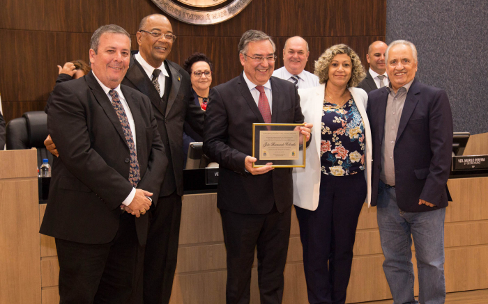 O ex-governador com cada de padreco e pré-candidato ao Senado Raimundo Colombo (PSD) teve uma noite cheia de emoção na sessão especial da Câmara de Vereadores de Itajaí, na terça. Por proposição do vereador Carlos Augusto Rosa, o Calinho Mecânico (PP), que está no quinto mandato, o Legislativo ap...