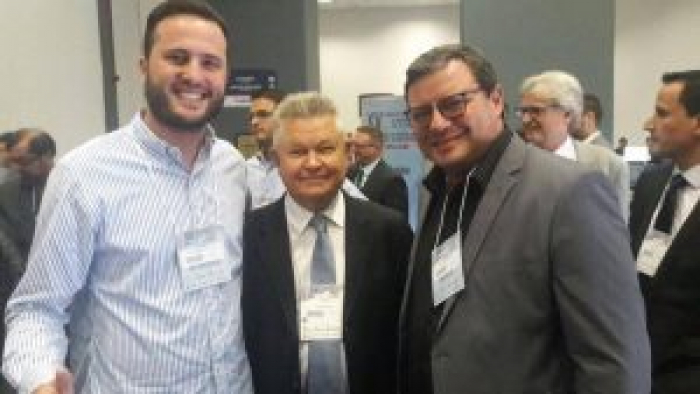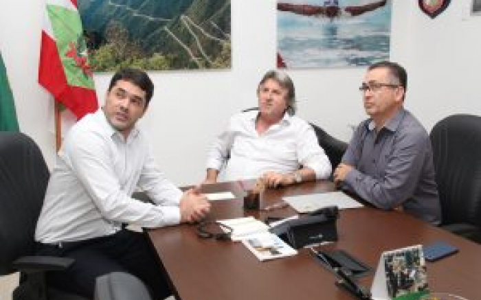 O prefeito da capital da pedrada e ex-do tiro ao vereador, Camboriú Elcio Rogério Kuhnen (PMDB) e o vice-prefeito, Ramon Jacob (PP), participam esta semana do XV Congresso Catarinense de Municípios, em Joinville, conhecida como cidade dos príncipes e das flores. Na foto, com o prefeito da cidade sed...