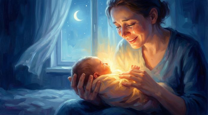 Talvez sejam lágrimas de todos nós diante do mistério da vida que se renova. O choro do bebê não é apenas um som na noite; é a prova de que a existência continua, potente e frágil ao mesmo tempo.