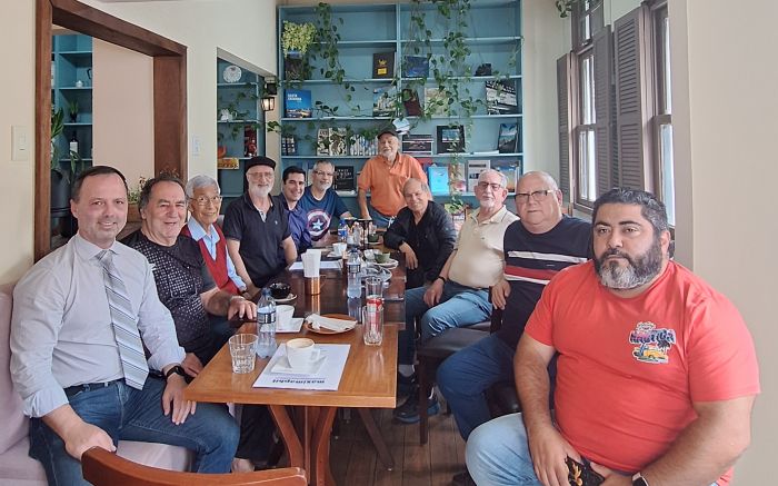 A Confraria 'Café de Quinta' recebeu esta semana a visita especial do desembargador aposentado Salim Schead. Esta é a segunda vez que o amigo participa de nossas reuniões ... vai acabar recebendo título de sócio. Presentes à reunião: Murilo Zipperer, Álvaro Castro, Paulo Kodaíra, Magru Floriano, Leandro Hahn, Gustavo Melim, Sydney e Salim Schead dos Santos, Robert Grahntam, Luiz Cidral, Alfabile Santana.