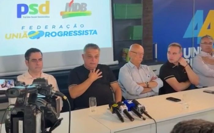 A coletiva reuniu os presidentes estaduais de siglas que estarão juntos no seu projeto: o deputado federal Carlos Chiodini, o Xoxodini (MDB); o senador turco-careca Esperidião Amin (PP); o deputado federal Fábio Schiochet (UB); o deputado estadual Júlio Garcia (PSD) e o presidente do PSD de SC, Eron Giordani (PSD). Além dos chefões das siglas, os ex-governadores: Raimundo Colombo (PSD), Pinho Moreira (MDB) e o ex-prefeito da capital manezinha, Gean Loureiro (UB), se fizeram presentes.
