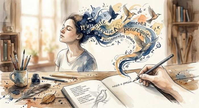É justamente nesse estado de suspensão que a poesia costuma bater à porta, não como uma visita educada, mas como uma necessidade de sobrevivência. Quando os pensamentos, antes desordenados e velozes, encontram o caminho do lápis, algo mágico acontece: o peso se transforma em métrica e a confusão se torna clareza. As palavras deixam de ser meras letras para se tornarem instrumentos de cura e ordem.
