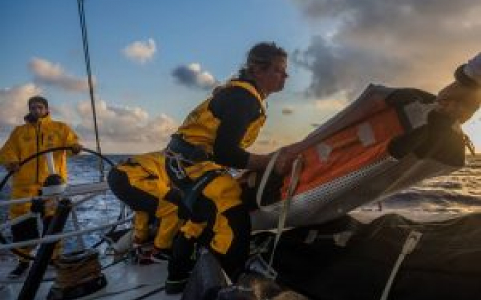 Imagem que chegou agora no Face da Volvo Ocean Race Dá pra ver a dificuldade enfrentada por todos os atletas para ter a melhor performance