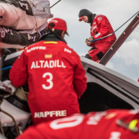 Além disso, o fator esportivo de levar o barco ao limite oferece zero conforto a bordo. A classificação coloca os espanhóis MAPFRE em primeiro lugar e os chineses do Dongfeng Race Team em segundo.