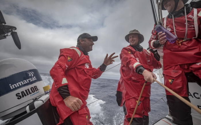 MAPFRE, Turn the Tide on Plastic, Dongfeng Race Team e Team Brunel estão todos à vista um do outro, separados por menos de quatro milhas.