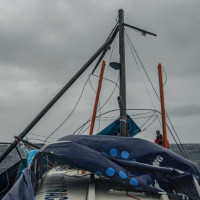 A operação de adaptar um novo mastro e seguir viagem até Itajaí começou assim que a tripulação do Vestas 11th Hour Racing anunciou que perdera a principal peça do barco na disputa da sétima etapa. A equipe foi a segunda a contornar o Cabo Horn e estava próxima do pódio.