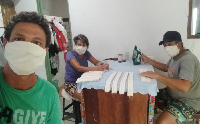 Velejadores de Itajaí (SC) produzem máscaras na Bahia