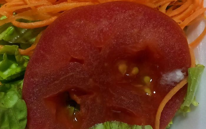 “Gostaria de denunciar uma situação recorrente e inaceitável em um restaurante de shopping. Fiz um pedido e para minha surpresa a salada que acompanhava o prato veio com uma rodela de tomate podre, com mofo e bolor. O cheiro de azedo era tão forte que parecia ter sido retirado do lixo.