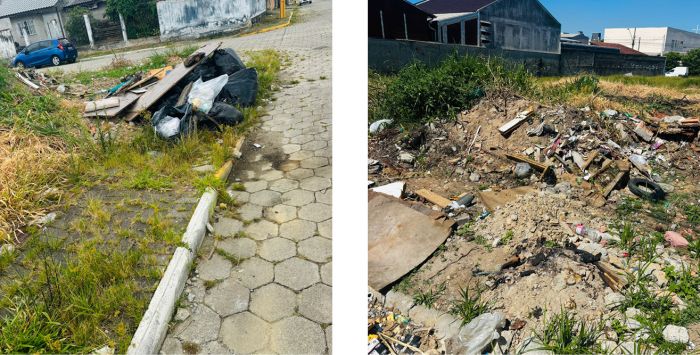 "Poderiam fazer uma reportagem sobre o lixo que estão jogando em terrenos no bairro Santa Regina, em Camboriú? Conversei com alguns moradores da região e a situação está bem complicada. Já fiz denúncias, mas segundo a prefeitura, nada pode ser feito. É possível ver que o lixo está sendo descartado até na calçada."