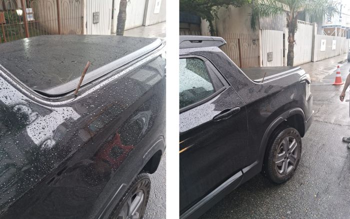 Além do risco evidente para quem passa a pé ou de carro, já houve danos a veículos. Isso é inaceitável. A rua precisa ser segura para todos, e é obrigação da obra garantir que nada escape do canteiro.