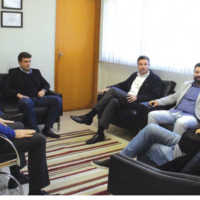 O ex-prefeito de Blumenau, Napoleão Bernardes, em visita ao prefeito pop star Fabrício Oliveira (PSB) juntamente com o suplente de vereador do PSDB, Kaká Fernandes. Do encontro participou também o secretário de Planejamento, o galego Rubens Spernau. Hummmm...