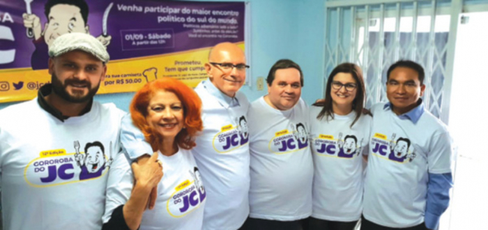 REDE NA CHOUPANA - O candidato ao Senado, Diego Mezzogiorno; candidata à vice-governadora Regina Santos; candidato a governador Rogério Portanova; candidata a deputada estadual, Jane Steffen, e o candidato a deputado federal, Leopardo Sales, já marcaram na agenda a Gororoba do JC