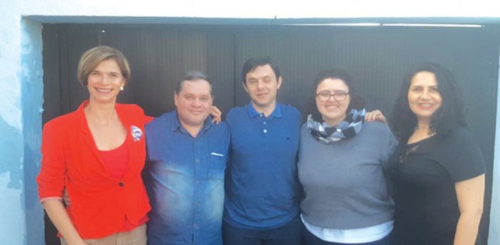 A candidata a deputada federal, Ângela Albino (PCdB), e o vereador Marcelo Werner (PCdoB) passaram pela choupana na tarde de ontem. Ângela veio fazer o lançamento de sua campanha.