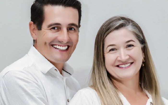 Sorridentes e felizes, Marcos Antônio Camatini e Daiana, leia-se Vó Dilma Bolos, comemoram a marca da produção de 30 mil bolos por dia na fábrica deles. Sucesso, parabéns!