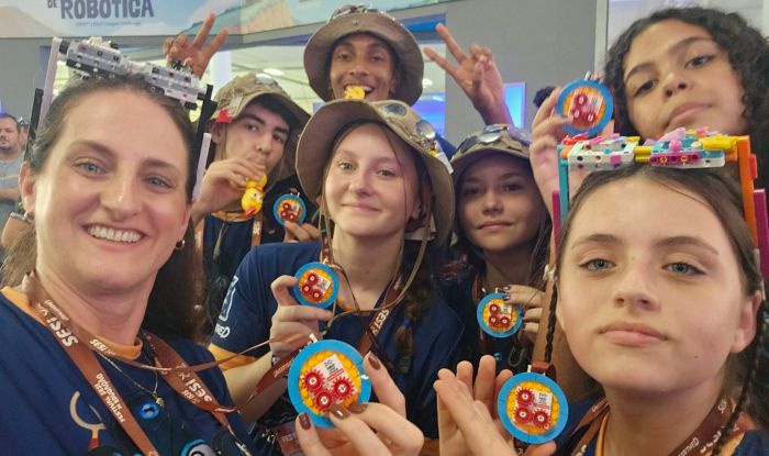 A professora Siliana Costa, com os alunos: Lucas Gardelli, Fernando Alves, Sophia Gasparelo, Luna Machado, Renata Freitas e Catarina Cunha de Souza, da Escola Sesi Itajaí, conquistou o 1º lugar nacional da First Lego League Challenge realizada em SP, garantindo a oportunidade de representar o Brasil no campeonato mundial em Houston, nos Estados Unidos, para onde eles vão no final de abril. Parabéns!