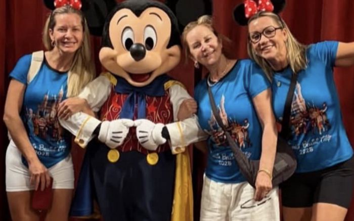 Juntinhas ao Mickey, na Disney, Maria Helena Bellini com as filhas Keity e Greici