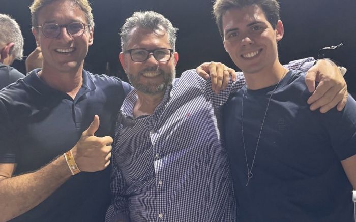 Pupa Fiedler, Danilo e Dudu Ferreira curtindo o show de Bryan Adams, segunda (9), em Curitiba