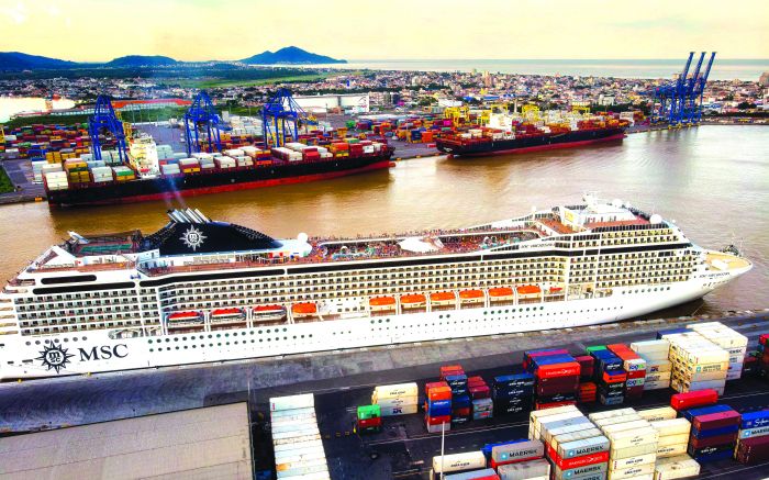 Navio MSC Sinfonia, atracado no porto de Itajaí.