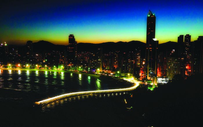 Barra Norte de Balneário Camboriú em um belo anoitecer. Foto com Drone DJI Mavir Air 2 (Hórus
