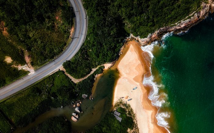 Canto da Praia do Estaleiro; vista do alto do hórus (Drone