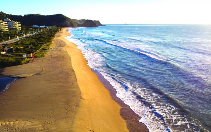 Registro da praia Brava de Itajaí toda linda sob a luz da manhã