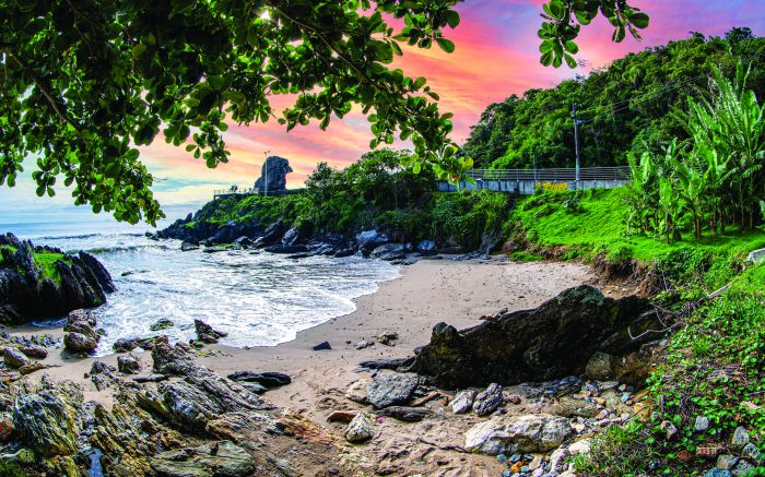 A famosa e bela pedra localizada no meio da Praia de Cabeçudas, em Itajaí. Registro com a câmera Nikon D810 + Nikkor 24-120