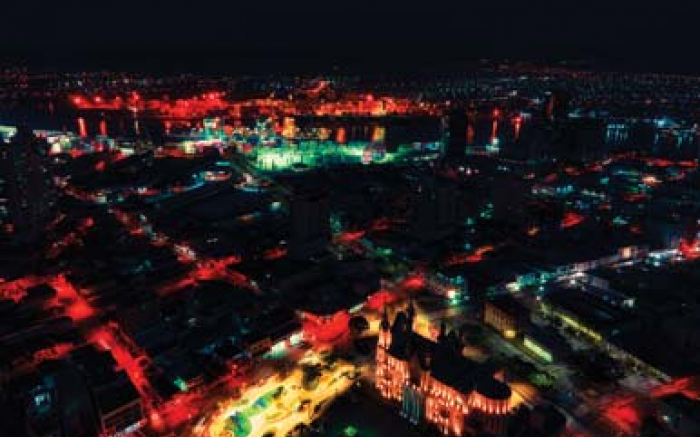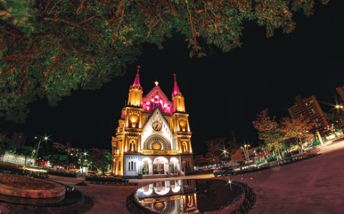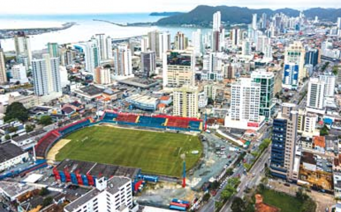 Registro do dia 9 de julho, às 18h33, com a câmera Nikon D810 + lente Olho de Peixe, do novo largo da igreja Matriz de Itajaí