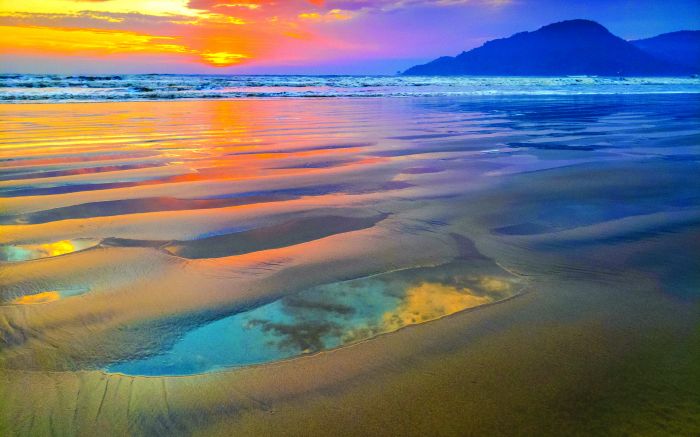 Essa é a região conhecida como Lagoa do Cassino, na praia Brava, em Itajaí. A lagoa e a maré alta criam espelhos perfeitos para fotografar.