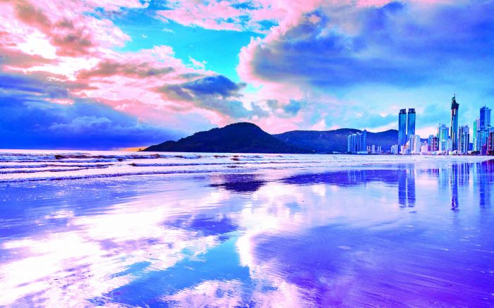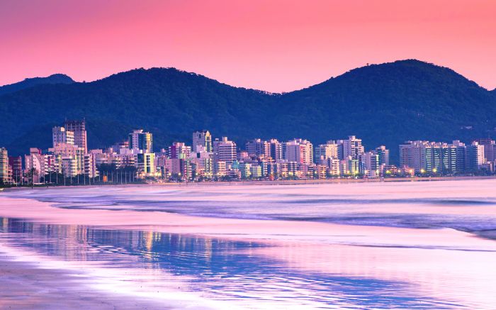 Pôr do sol com o visual da Ilha das Cabras em Balneário Camboriú