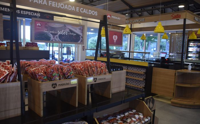 Com 200 metros quadrados, a loja vende produtos premium, dispõe de lanchonete, área externa para consumo de lanches feitos na hora e refeições rápidas.