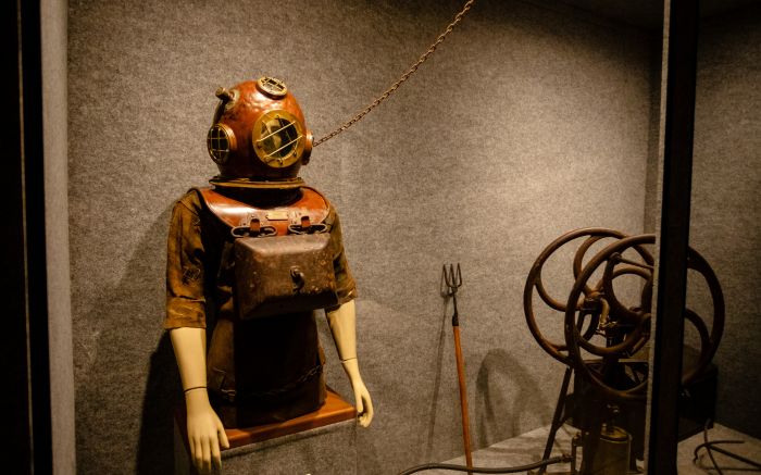O público poderá conhecer a história do mergulho por meio de uma coleção de equipamentos raros e registros visuais que ilustram a evolução da atividade. Já a ala “Poluição dos Mares” traz dados sobre os impactos da ação humana no meio ambiente, promovendo conscientização e reflexão sobre práticas sustentáveis.