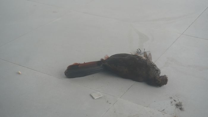 Passarinhada está morrendo ao bater em janelas na obra da prefeitura no Morro da Cruz