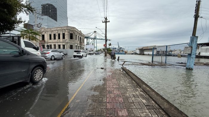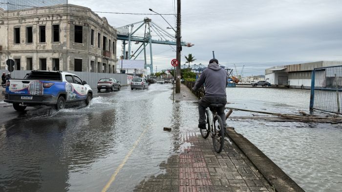 Além da maré alta, segundo a Defesa Civil, o tempo segue instável até quinta, com céu encoberto e chuva em vários momentos do dia. O friozinho permanece, com a chegada de uma massa de ar frio que deve manter as temperaturas mínimas entre 12 e 14°C na região até sexta-feira.