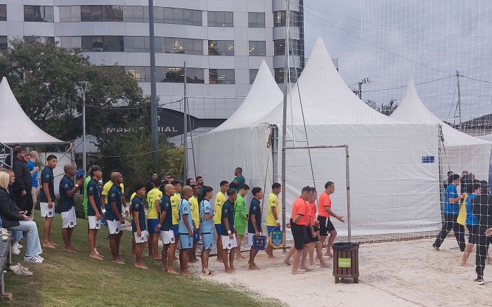 Brasil estreia com vitória na competição sul-americana de futebol de areia em Itajaí