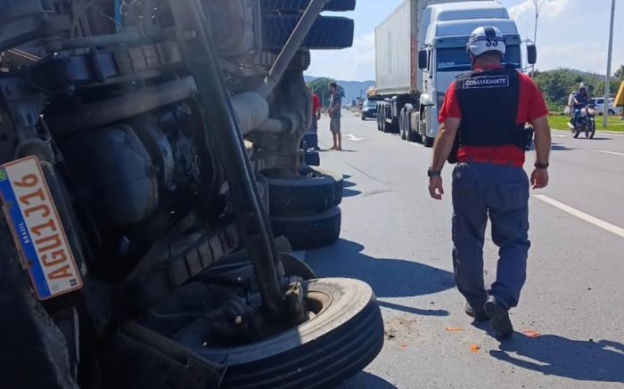 A Polícia Rodoviária Federal registrou lentidão no trecho devido à curiosidade de motoristas que reduziram a velocidade para olhar o tombamento.