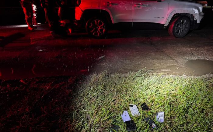 Os suspeitos, dois homens e uma mulher, foram encontrados e presos enquanto tentavam fugir pela BR 470. Sete celulares foram recuperados ainda na madrugada de sábado. A partir daí, a troca de informações entre o 10º e o 12º batalhão da PM resultou na desarticulação do grupo.