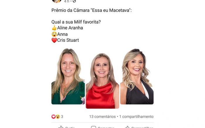 Na época, as vereadoras Anna Carolina Cristofolini Martins, Aline Aranha, Christiane Stuart, Célia Regina da Costa e Hilda Deola foram alvo de postagens ofensivas do perfil apócrifo “Xau ...