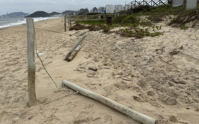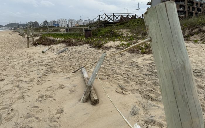 A ressaca danificou passarelas de madeira e cercas de proteção da restinga na Praia Brava norte, em Itajaí. A situação foi denunciada pela organização Salve Brava nas redes sociais, com alerta para risco de acidentes e pedido de reformas urgentes.