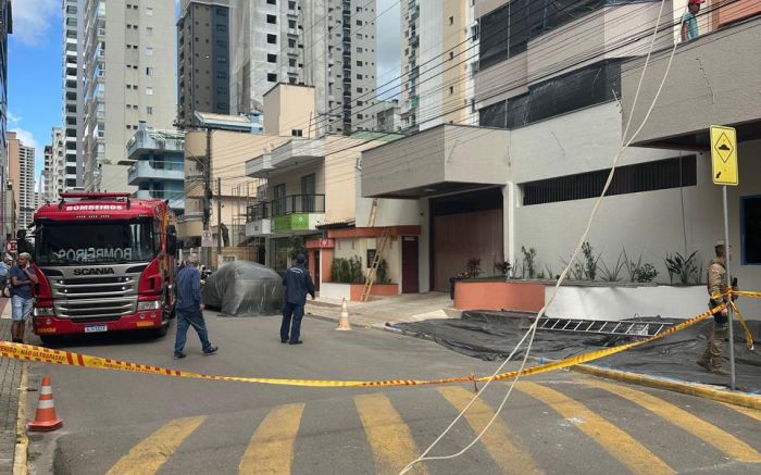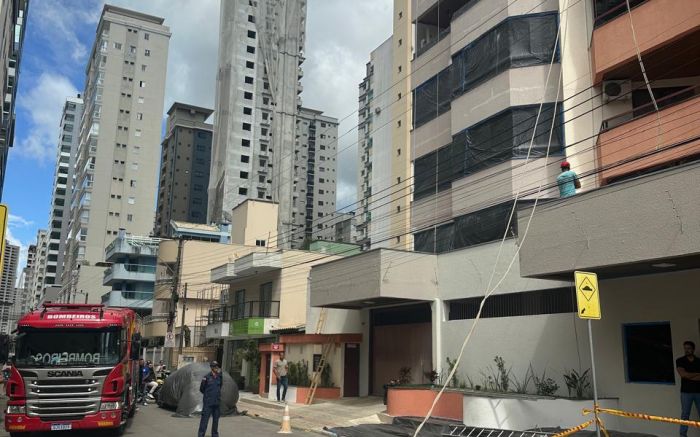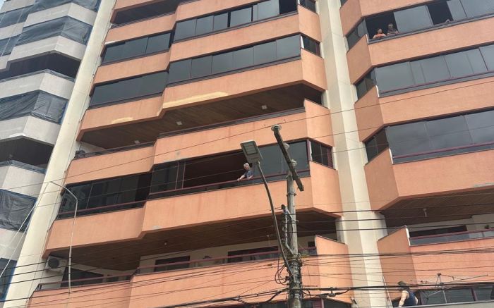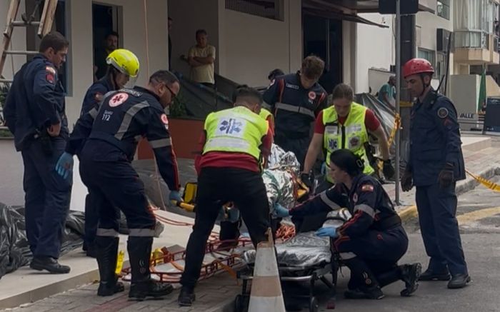 Um pintor caiu de cerca de 20 metros na manhã de segunda-feira, por volta das 10h, enquanto trabalhava na pintura da fachada de um prédio na rua 266, no bairro Andorinha, em Itapema.