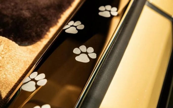 O interior do carro combina couro Moccasin e Crème Light, com detalhes em nogueira-real de alto brilho, enquanto pegadas de Bailey aparecem gravadas no painel do passageiro e discretamente na lateral traseira do veículo. Até a pintura externa foi inspirada na tonalidade do pelo do animal.