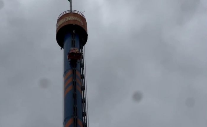 Trio estava no Big Drop quando o brinquedo travou por 20 minutos