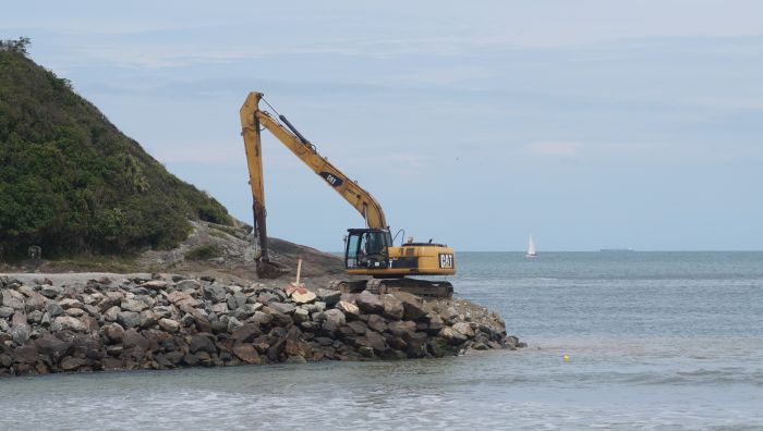 A obra de ampliação do molhe do Gravatá, em Navegantes, foi iniciada nesta semana pela empresa vencedora da licitação, com contrato de R$ 3,1 milhões. O serviço é tocado pela empreiteira Baltt, de Balneário Piçarras, a mesma que fez o molhe do pontal norte, em Balneário Camboriú.