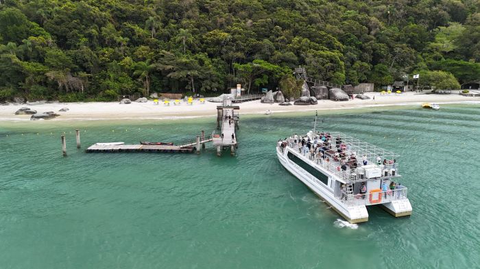 Também tem o passeio no sentido contrário: o catamarã sai do píer de Porto Belo às 9h40 e leva os passageiros até a Barra Sul. O retorno é às 16h. Em todos os casos, a recomendação é chegar 30 minutos antes pra não correr risco de perder a embarcação.